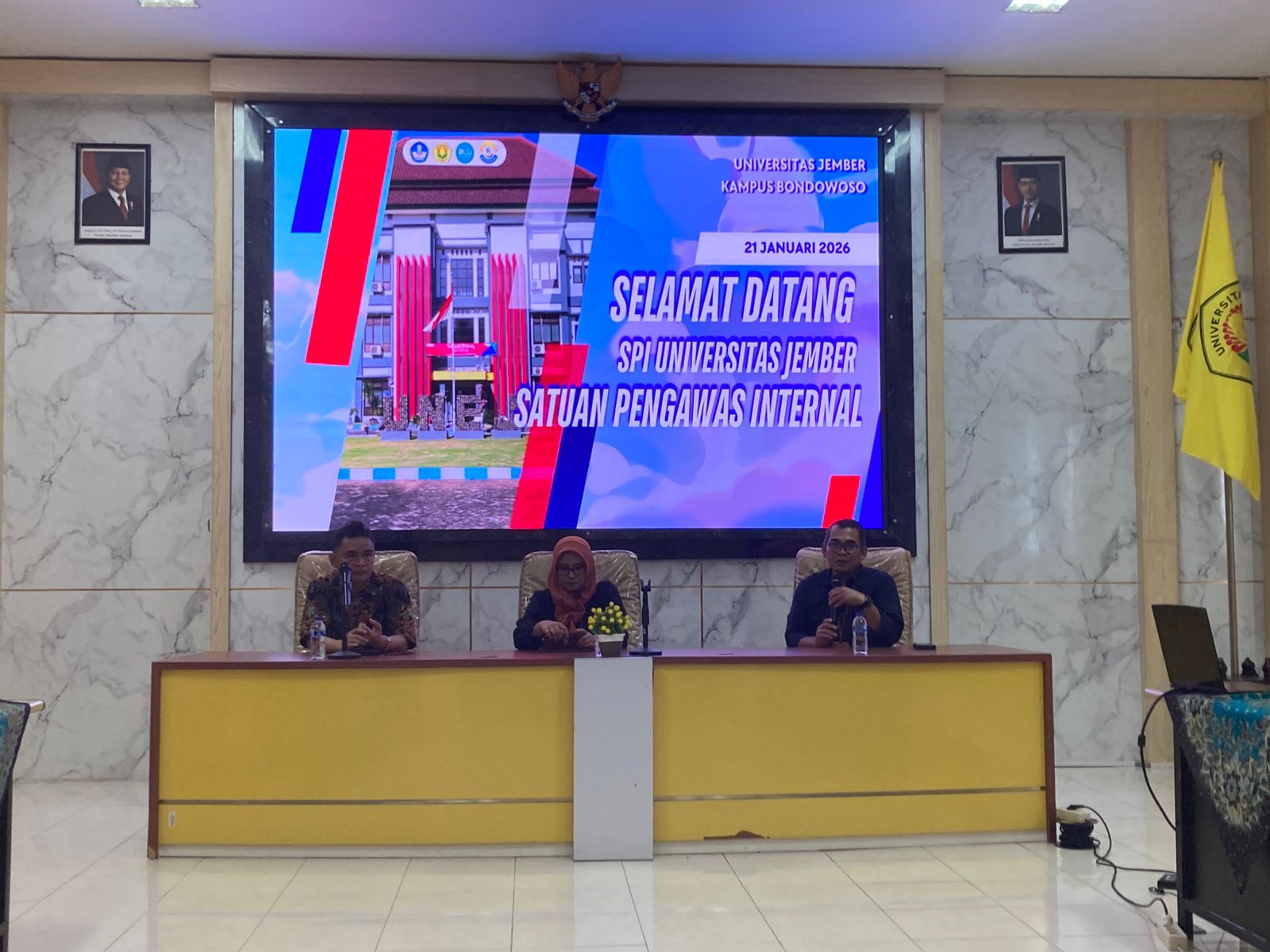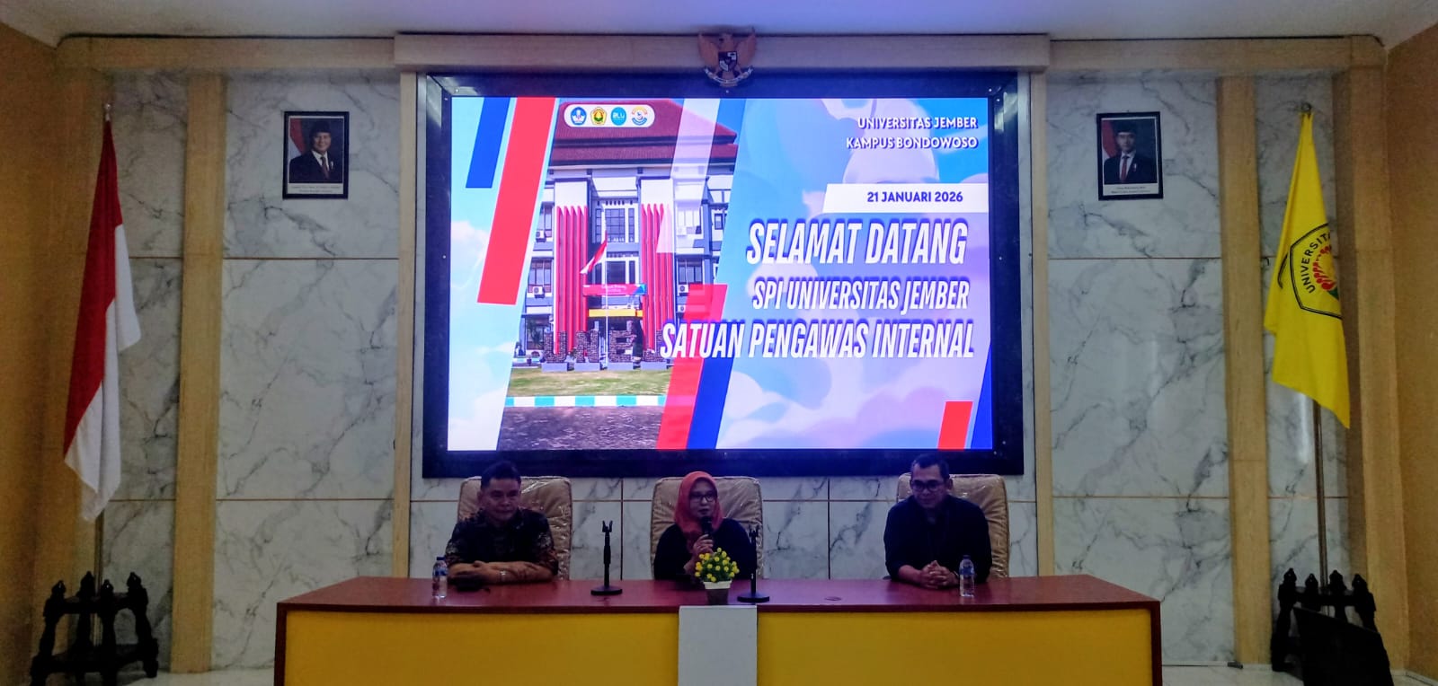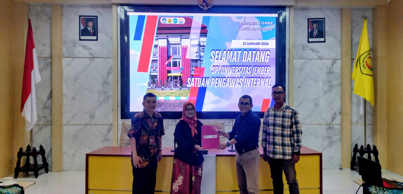Pada tanggal 21 Januari 2026 SPI Universitas Jember melaksanakan kegiatan audit kinerja tahap 1 di Universitas Jember Kampus Bondowoso. Dalam kegiatan audit ini dilakukan monitoring dan evaluasi pada bidang SDM, PBJ, BMN dan Pengelolaan Keuangan Tahun 2025. Tim SPI diterima oleh Koordinator Prodi Kampus Bondowoso. Aktivitas audit mencakup Entry Meeting, Kegiatan Desk Dokumen Keuangan, Kegiatan Visitasi PBJ, BMN, serta Konfirmasi Bidang SDM dan Keuangan. Selanjutnya dilaksanakan penyampaian hasil audit dalam kegaitan Exit Meeting.