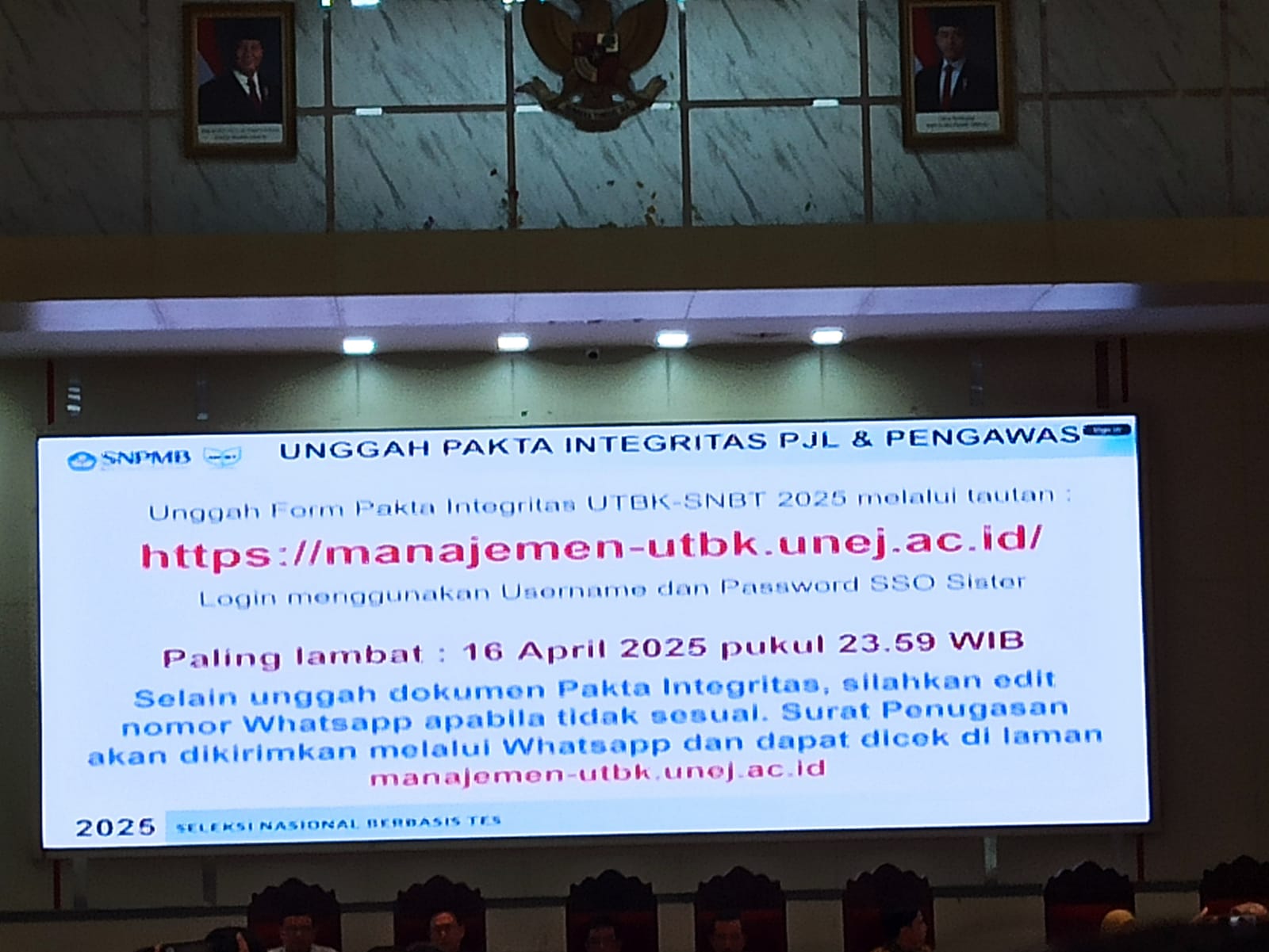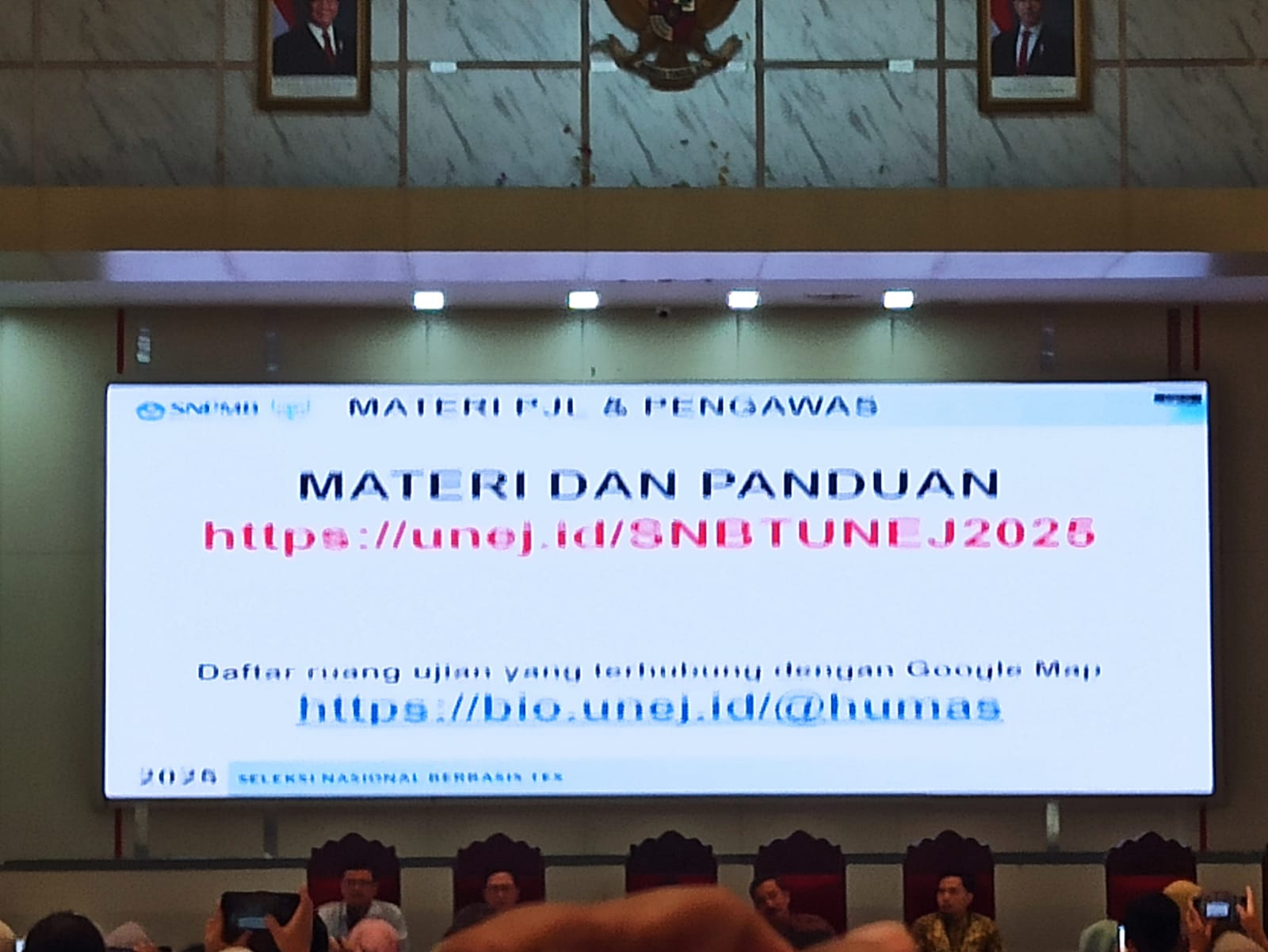 Pada tanggal 15 April 2025, Universitas Jember melaksanakan kegiatan Pengarahan dan Pembekalan Penanggungjawab lokasi dan Pengawas UTBK SNBT Tahun 2025. Kegiatan ini dilaksanakan oleh Panitia Pusat UTBK Universitas Jember yang dipimpin oleh Wakil Rektor I Universitas Jember. Dalam acara tersebut, Ketua SPI sebagai Ketua Tim Monev UTBK SNBT Universitas Jember turut serta memberikan arahan terkait pertanggungjawaban pelaksanaan kegiatan, khususnya terkait konsumsi dan pemenuhan syarat-syarat administrasi PJL dan Pengawas UTBK SNBT.