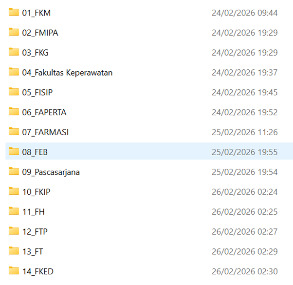 Pada tanggal 26 Februari 2026, Tim Penilai Perguruan Tinggi Negeri Universitas Jember telah menyelesaikan penilaian tahap I atas pengisian  LKE ZI di aplikasi  https://inspirasidikti.kemdiktisaintek.go.id. Sebanyak 14 Fakultas telah dinilai dan hasil penilaian telah dikembalikan ke masing-masing fakultas untuk dilakukan perbaikan hingga tanggal 17 Maret 2026. Terdapat 2 Fakultas yang belum mensubmit isian LKE ZI dalam kegiatan ini, yaitu Fakultas Ilmu Budaya dan Fakultas Ilmu Komputer.  Sedangkan fakultas yang telah dinilai adalah: